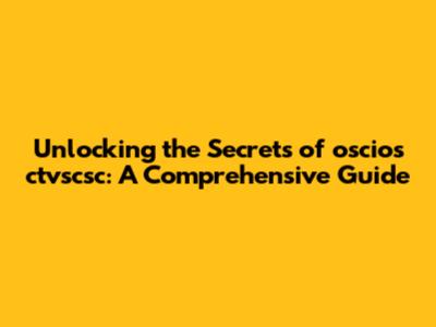 Unlocking The Secrets Of Oscios Ctvscsc: A Comprehensive Guide