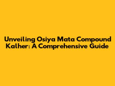Hey everyone, let's dive into the fascinating world of Osiya Mata Compound Kalher! If you're curious about this place and what it has to offer, you've come to the right spot. We're going to break down everything you need to know, from its historical significance to the practicalities of visiting. Get ready to explore a location brimming with history, beauty, and cultural richness. We'll cover what makes it special, and give you all the information you need to plan your trip. So, buckle up, because we're about to embark on a journey through the amazing Osiya Mata Compound Kalher. Let's start with a big picture look at this amazing place. Osiya Mata Compound Kalher is a place of deep cultural and historical significance. It's a place where ancient architecture meets vibrant traditions, offering visitors a unique and unforgettable experience. The compound is known for its exquisite temples, intricate carvings, and the serene atmosphere that pervades the area. It serves not only as a place of worship but also as a testament to the rich heritage of the region. This is more than just a destination; it's a journey through time and culture. As we journey through the site, remember that each detail, from the grand structures to the smallest carvings, tells a story. This spot is a symbol of artistry and spirituality, showcasing the skill and dedication of those who built it. Ready to explore? Let's take a look at the historical timeline, the architectural marvels, the religious relevance, and practical tips for visiting Osiya Mata Compound Kalher. Prepare to be amazed and learn about all the reasons this location is a must-visit destination. Whether you're a history buff, a travel enthusiast, or just seeking a peaceful getaway, Osiya Mata Compound Kalher has something to offer everyone. Let's delve deep, shall we?