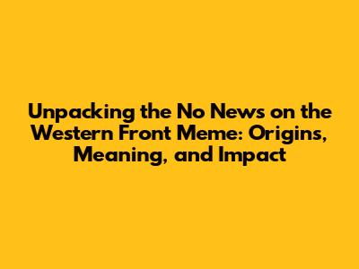 Unpacking The 'No News On The Western Front' Meme: Origins, Meaning, And Impact