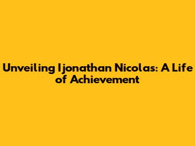 Unveiling Ijonathan Nicolas: A Life Of Achievement