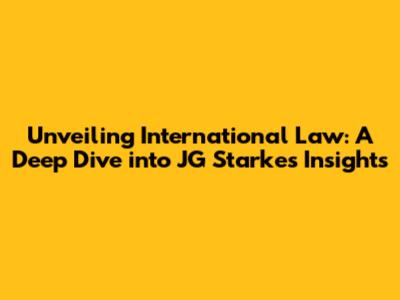 Unveiling International Law: A Deep Dive Into JG Starke's Insights