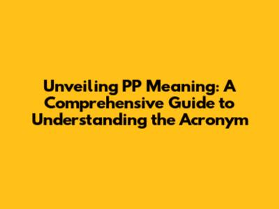 Unveiling 'PP' Meaning: A Comprehensive Guide To Understanding The Acronym