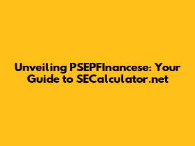 Unveiling PSEPFInancese: Your Guide To SECalculator.net