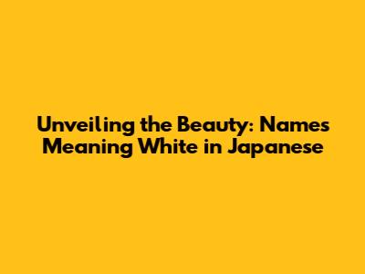 Unveiling The Beauty: Names Meaning White In Japanese