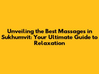 Hey guys, if you're looking for the absolute best massage experience in the vibrant heart of Bangkok, specifically the Sukhumvit area, you've landed in the right spot! Sukhumvit is like a paradise for massage lovers, packed with options ranging from traditional Thai massages to luxurious spa treatments. Figuring out which place is truly worth your time and money can be a real challenge, right? Well, that's where I come in! I've put together this comprehensive guide to help you navigate the massage scene in Sukhumvit, ensuring you find the perfect massage to melt away your stress and leave you feeling completely rejuvenated. We'll explore various types of massages, discuss what to look for in a good massage place, and highlight some of the top-rated spas and massage parlors in the area. Get ready to embark on a journey of relaxation and discover the best massage experience Sukhumvit has to offer!