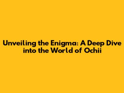 Unveiling The Enigma: A Deep Dive Into The World Of Ochii