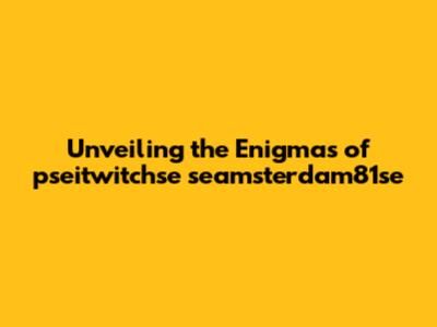 Unveiling The Enigmas Of Pseitwitchse Seamsterdam81se