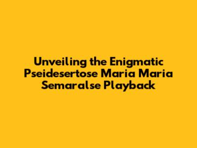 Unveiling The Enigmatic 'Pseidesertose Maria Maria Semaralse' Playback