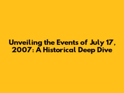 Unveiling The Events Of July 17, 2007: A Historical Deep Dive