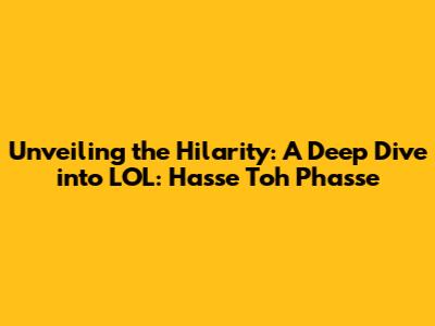 Unveiling The Hilarity: A Deep Dive Into LOL: Hasse Toh Phasse