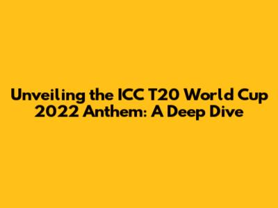 Unveiling The ICC T20 World Cup 2022 Anthem: A Deep Dive