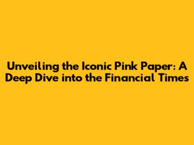Unveiling The Iconic Pink Paper: A Deep Dive Into The Financial Times