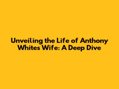Unveiling The Life Of Anthony White's Wife: A Deep Dive