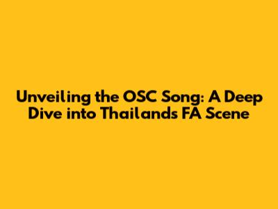 Unveiling The OSC Song: A Deep Dive Into Thailand's FA Scene