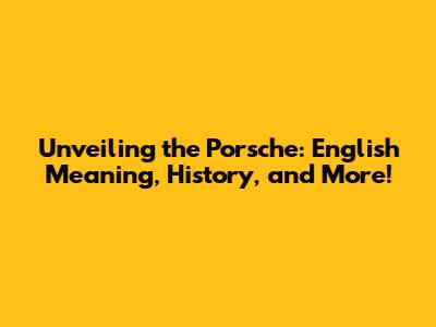 Unveiling The Porsche: English Meaning, History, And More!