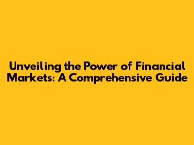 Unveiling The Power Of Financial Markets: A Comprehensive Guide