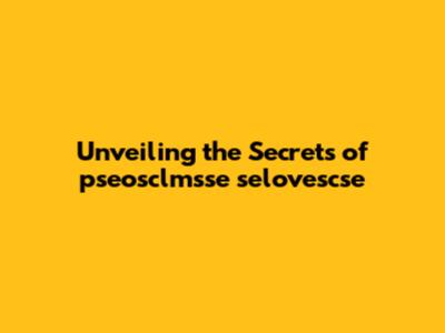 Unveiling The Secrets Of pseosclmsse Selovescse