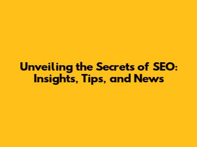 Unveiling The Secrets Of SEO: Insights, Tips, And News