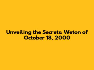 Unveiling The Secrets: Weton Of October 18, 2000