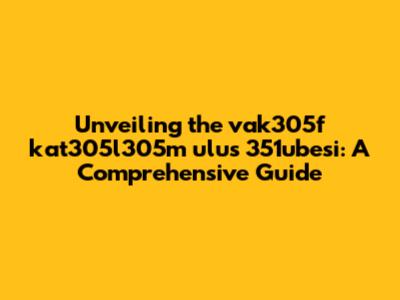 Unveiling The Vak305f Kat305l305m Ulus 351ubesi: A Comprehensive Guide