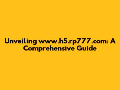 Unveiling Www.h5.rp777.com: A Comprehensive Guide