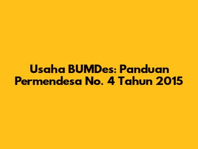 Hey guys! Pernah dengar tentang Badan Usaha Milik Desa atau BUMDes? Pasti sering dong ya. Nah, BUMDes ini keren banget karena jadi motor penggerak ekonomi di desa. Tapi, tahu nggak sih kalau ada aturan mainnya, terutama soal jenis usaha yang boleh mereka jalankan? Yup, semua itu diatur jelas dalam Permendesa No. 4 Tahun 2015. Artikel ini bakal ngupas tuntas sampai ke akar-akarnya, biar kalian semua pada paham dan bisa manfaatin potensi BUMDes semaksimal mungkin. Jadi, siap-siap ya, kita bakal menyelami dunia BUMDes!