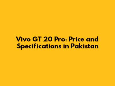 Vivo GT 20 Pro: Price & Specs In Pakistan