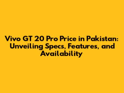 Vivo GT 20 Pro Price In Pakistan: Specs, Features & Availability