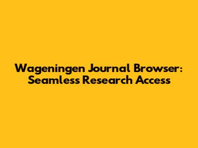 Why the Wageningen Journal Browser is Your Go-To Resource
