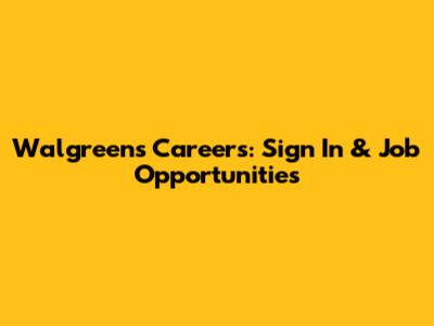 Walgreens Careers: Sign In & Job Opportunities