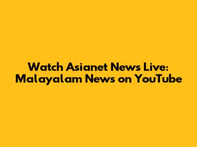 Watch Asianet News Live: Malayalam News On YouTube