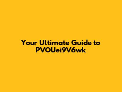 Hey guys, let's dive into something super cool and potentially a game-changer for you: PVOUei9V6wk! You might be scratching your head wondering what on earth this string of characters even means. Well, stick around, because by the end of this article, you'll be an expert, or at least have a much clearer picture of its significance. We're going to break down PVOUei9V6wk into bite-sized, easy-to-understand pieces. Whether you're a seasoned pro or just dipping your toes into the digital ocean, this guide is for you. We’ll cover everything from what it is, why it matters, and how you might encounter it in your daily digital life. Think of this as your VIP pass to understanding PVOUei9V6wk without all the confusing jargon. Let’s get this party started and demystify this whole PVOUei9V6wk thing together!