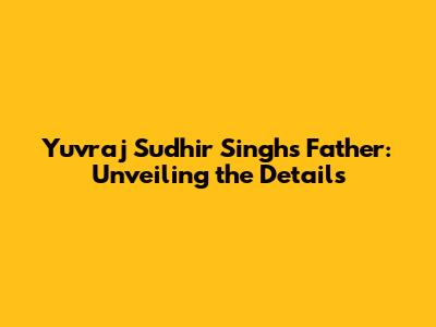 Yuvraj Sudhir Singh's Father: Unveiling The Details